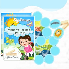 Ви отримуєте лепбук, що містить гру з прищіпками «Жива та нежива природа», 5 дидактичних ігор («Що забруднює повітря?», «Сортуємо сміття», «Лісові правила поведінки», «Бережіть воду», «Що корисне, а що шкідливе для природи?»), аркуш з карткми «Як зберети природу?», «Що дає людині природа?», квітку «Кому потрібна вода?»